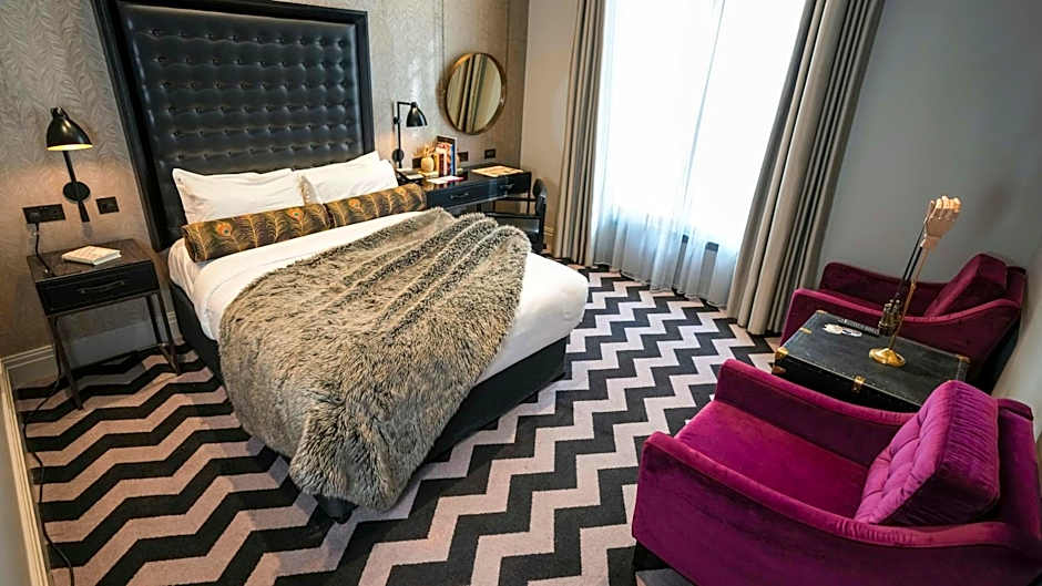 This room features a mini bar packed with lots of goodies to purchase, champagne, popcorn, rum flavored fruit pastilles and a hangover cure. Double bed with luxurious Egyptian duvet and pillows, waffle robes and wonderful monsoon showers. 46” TV with Freeview and Sky Sports. Turndown with biscuits. Complimentary membership for residents to Club Brass for the duration of your stay.